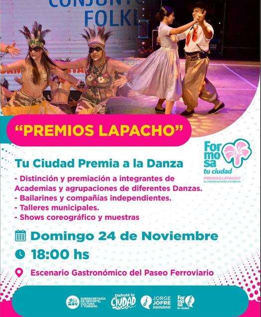 La cultura y el arte se dan cita en la 1ra edición de los **PREMIOS LAPACHO 2024**, un evento que celebra y reconoce a las personalidades y bailarines destacados de cada institución de danza de nuestra ciudad. Este grandioso evento tendrá lugar el **Domingo 24 de noviembre**, a partir de las **18:00 hs.**, en el **Escenario Gastronómico del Paseo Ferroviario**.