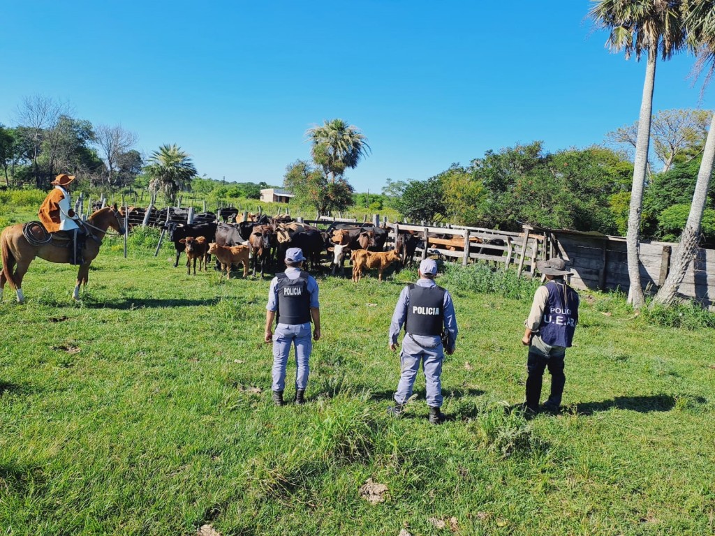 Efectivos policiales retuvieron 64 cabezas de ganado mayor en pie de un establecimiento ganadero, ubicado en inmediación a la Ruta Provincial N° 9 de la Colonia Kilómetro 100.
