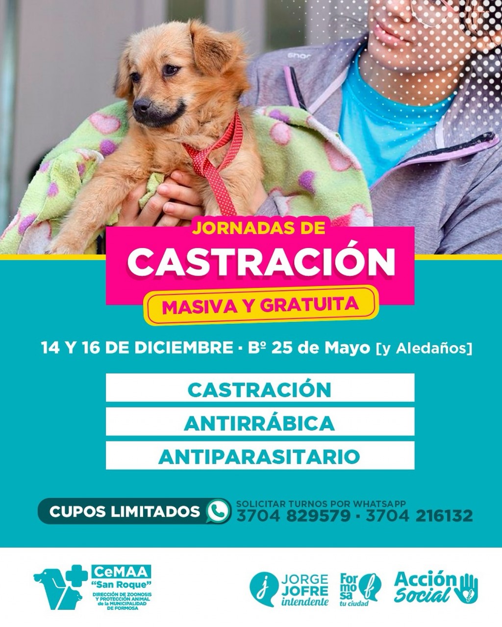 Se vienen dos jornadas de CASTRACIÓN MASIVA en el B° 25 de Mayo y zonas aledañas 14 y 16 de diciembre