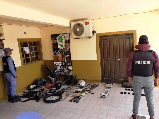 Efectivos de la fuerza provincial detuvieron a cuatro personas, tres hombres y una mujer, y secuestraron una motocicleta, varias partes de otras desarmadas y elementos que interesaban en la investigación de una causa por "Asociación ilícita y recepción, Robo".
