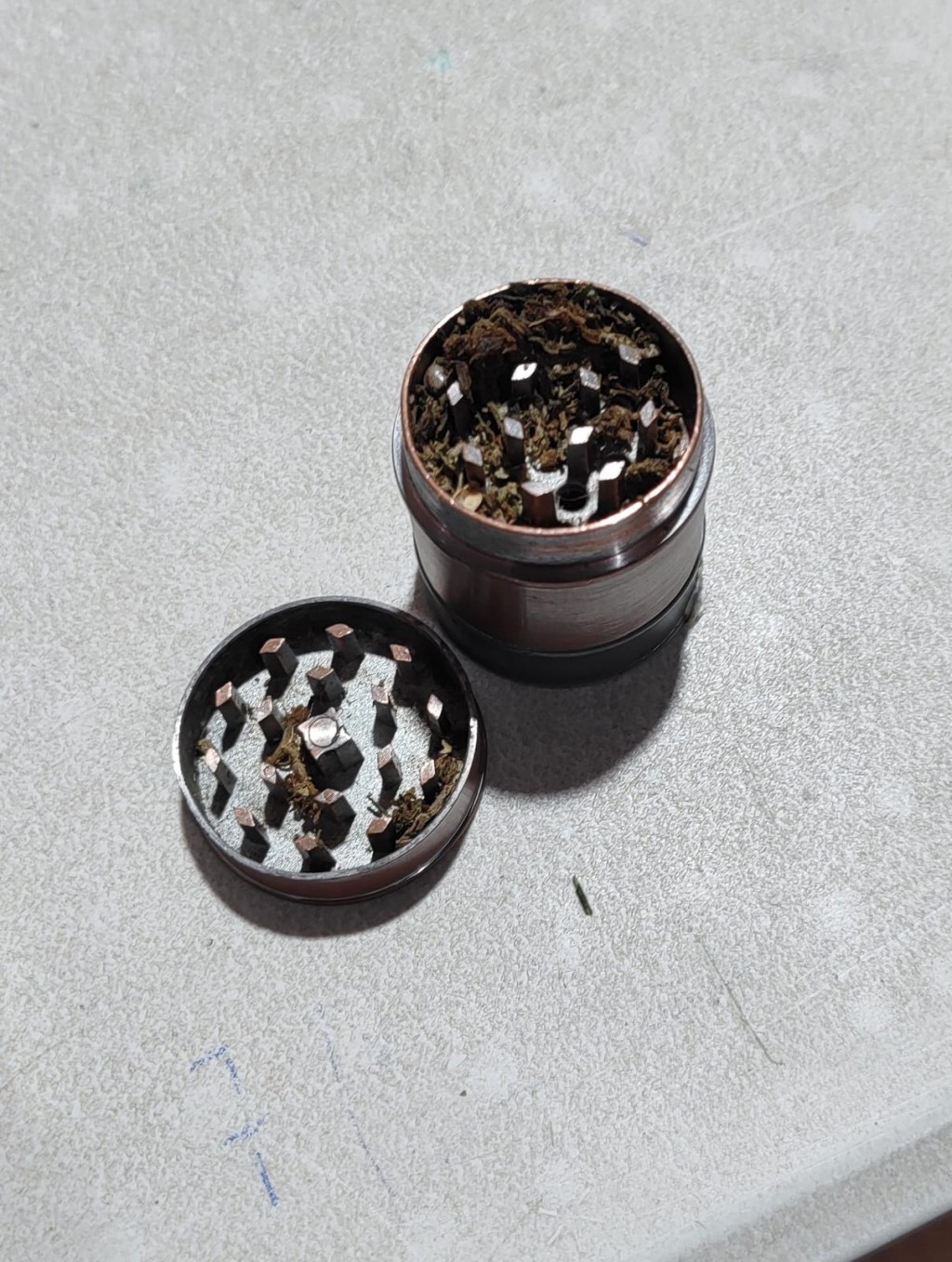 Durante el cacheo hallaron varios  gramos de marihuana disgregada en un triturador metálico y todo fue secuestrado, más la aprehensión del sujeto.