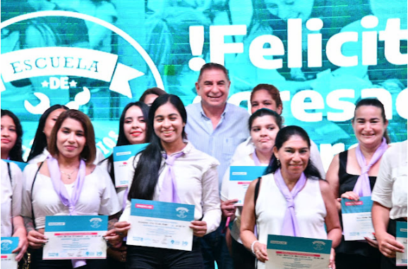Los familiares y amigos de los más de 500 nuevos profesionales se reunieron para celebrar este enorme logro y para reconocer la dedicación de cada uno de ellos, quienes, en un esfuerzo por mejorar las condiciones socioeconómicas de sus familias, se han capacitado en alguno de los siguientes 23 cursos de oficios que una vez más ofreció el Municipio: Jardinería y Paisajismo, Auxiliar en Panadería, Reparación y Mantenimiento de Split y AA, Decoración Básica de Tortas y Mesas Dulces, Diseño de Moda Sostenible, Fotografía Profesional, Fofuchas, Tejido Crochet, Amigurumis, Refrigeración General, Mecánica de Motos, Compostura Artesanal de Calzados, Herrería Artesanal, Bartender, Carpintería Fina en Aluminio, Mantenimiento de Piscinas, Auxiliar en Pastelería y Repostería, Estética Corporal, Auxiliar en Peluquería, Belleza en Pies y Manos, Maquillaje y Auxiliar en Instalaciones Eléctricas Domiciliarias.