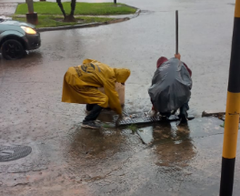 Frente al temporal, las cuadrillas municipales se encuentran trabajando en distintos puntos de la ciudad.Se realizan tareas de desobstrucción de bocas de tormenta, limpieza de desagües y mantenimiento general para facilitar el escurrimiento del agua.