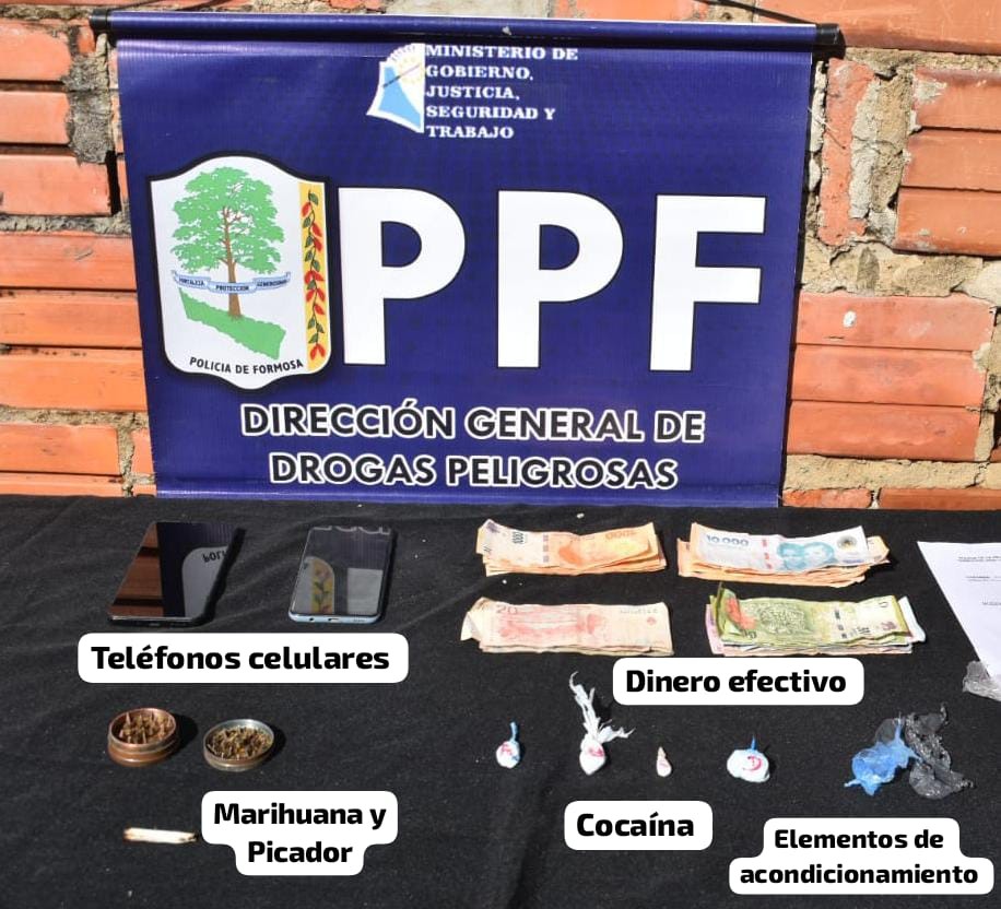 Secuestraron gramos de cocaína, dinero, teléfonos celulares, elementos de acondicionamiento, triturador de marihuana y un cigarrillo de marihuana parcialmente consumido, entre otros
