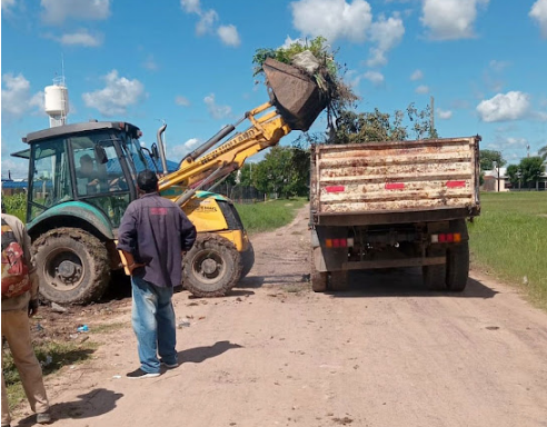 Por su parte, una intervención importante para el mantenimiento de desagües pluviales se realizó en el B° República Argentina, por medio del cuneteo manual y mecánico, con carga directa, en los drenajes principales del sector.
