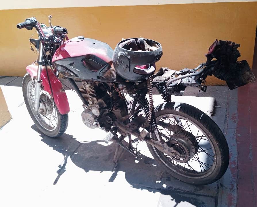 En el lugar se hallaba un hombre, de 40 años, y metros más adelante su motocicleta Motomel S-2 roja incinerada casi en su totalidad.