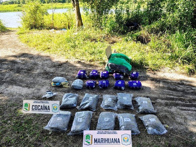 La última intervención fue en el barrio Lote Rural Tres Bis, a la vera del río Paraguay, en el sector conocido como Ibirapitá, cuando en medio de recorridas preventivas hallaron en zona de malezas un bulto recubierto en cartón y embalada con cinta, que contenía marihuana y cocaína.