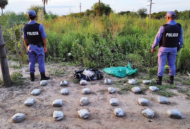 Efectivos de la Unidad Regional Cuatro secuestraron 11 kilos, con 288 gramos, de cogollos y flores de marihuana, distribuidos en 24 bultos, a la vera de la Ruta Nacional 11.