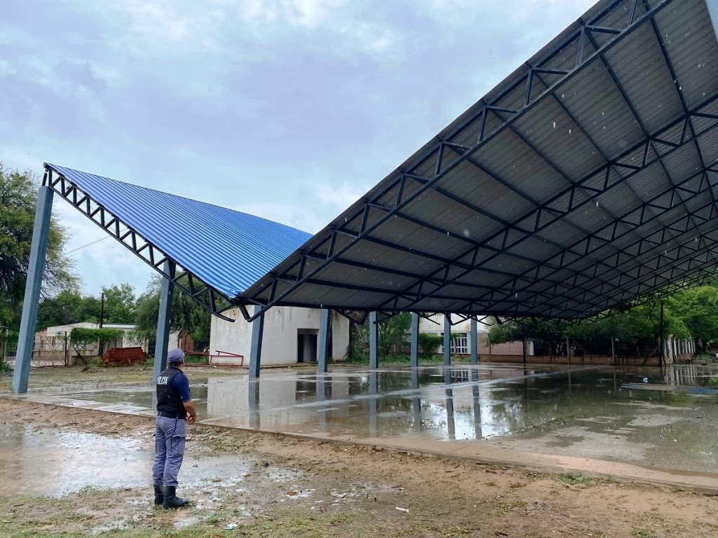 Indicó que entre los daños materiales registrados estuvo la caída del tinglado del polideportivo de la Escuela Provincial de Educación Primaria N° 259, situada en el centro de la localidad, el cual se encuentra en construcción por parte del Gobierno de Formosa.