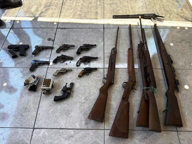 Allí, los policías detuvieron al imputado y durante una minuciosa inspección ocular secuestraron pistolas, revólveres, rifles, escopetas, partes de una carabina y cartuchos.