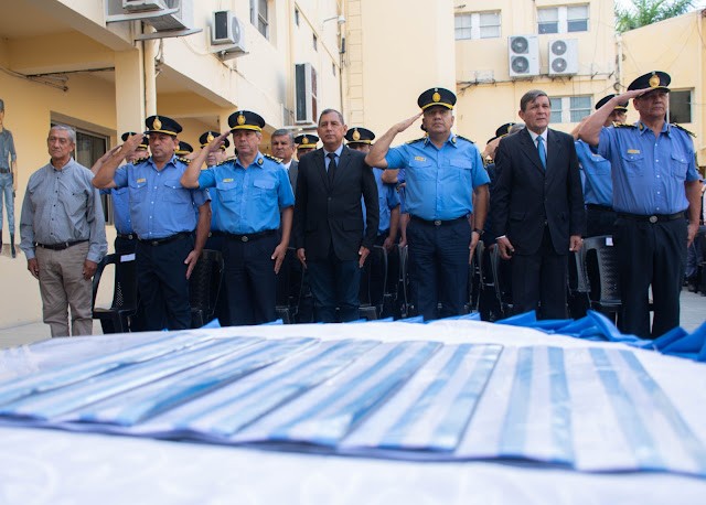 La ceremonia se realizó este martes a las 8:00 horas, en plaza de armas de la Jefatura de Policía, ubicada en la calle Saavedra 325 del barrio San Martín, de esta ciudad.