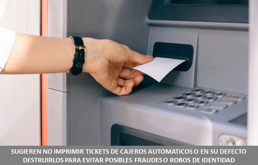 Sugieren no imprimir tickets de cajeros automáticos o en su defecto destruirlos para evitar posibles fraudes o robos de identidad