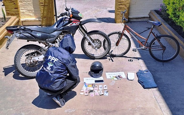 El segundo implicado, de 38 años, intentó escapar a pie tras abandonar la motocicleta e ingresó a una residencia juvenil, previo apoderarse de una bicicleta; finalmente fue detenido y también se secuestró el rodado.
