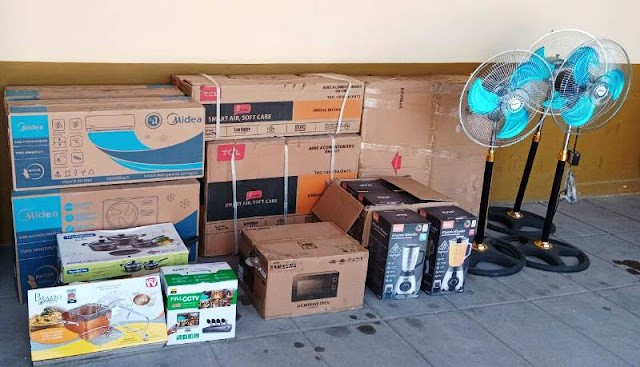 Mientras cumplían la orden del juez, constaron la existencia de electrodomésticos de origen extranjero sin aval aduanero, entre ellos tres ventiladores, cuatro aires acondicionados, un horno eléctrico, seis licuadoras y un set de ollas, todos en cajas.