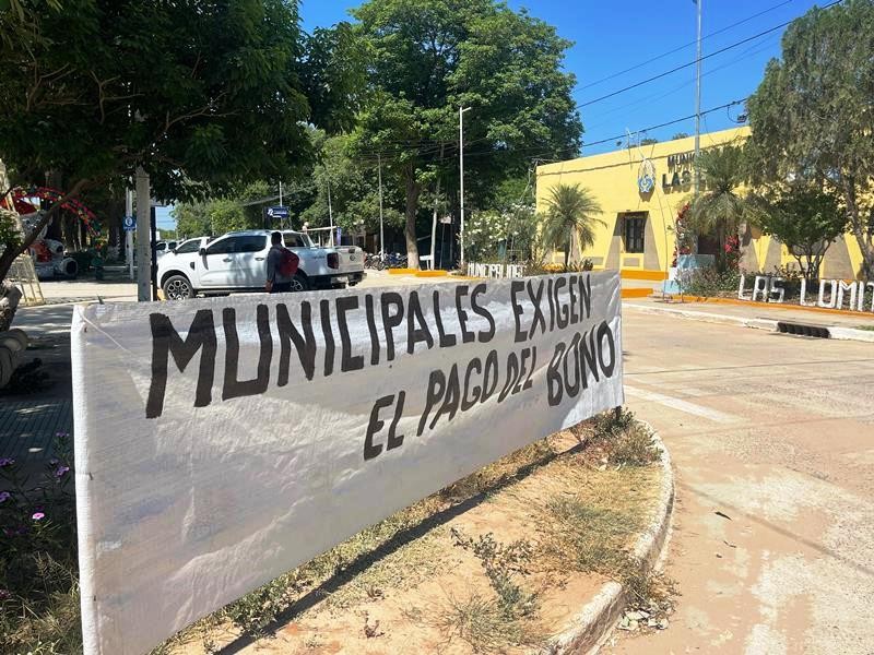 Luego de la insólita respuesta del Intendente lomitense a los empleados municipales que reclaman el pago del bono extraordinario, este martes 14 iniciaron una protesta frente al Municipio local.