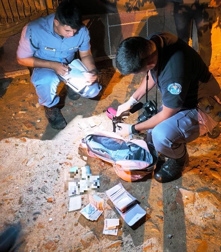 Posteriormente, un familiar del detenido se presentó en la dependencia policial y entregó una mochila con un revólver calibre 32, documentaciones a nombre de la víctima y dinero.