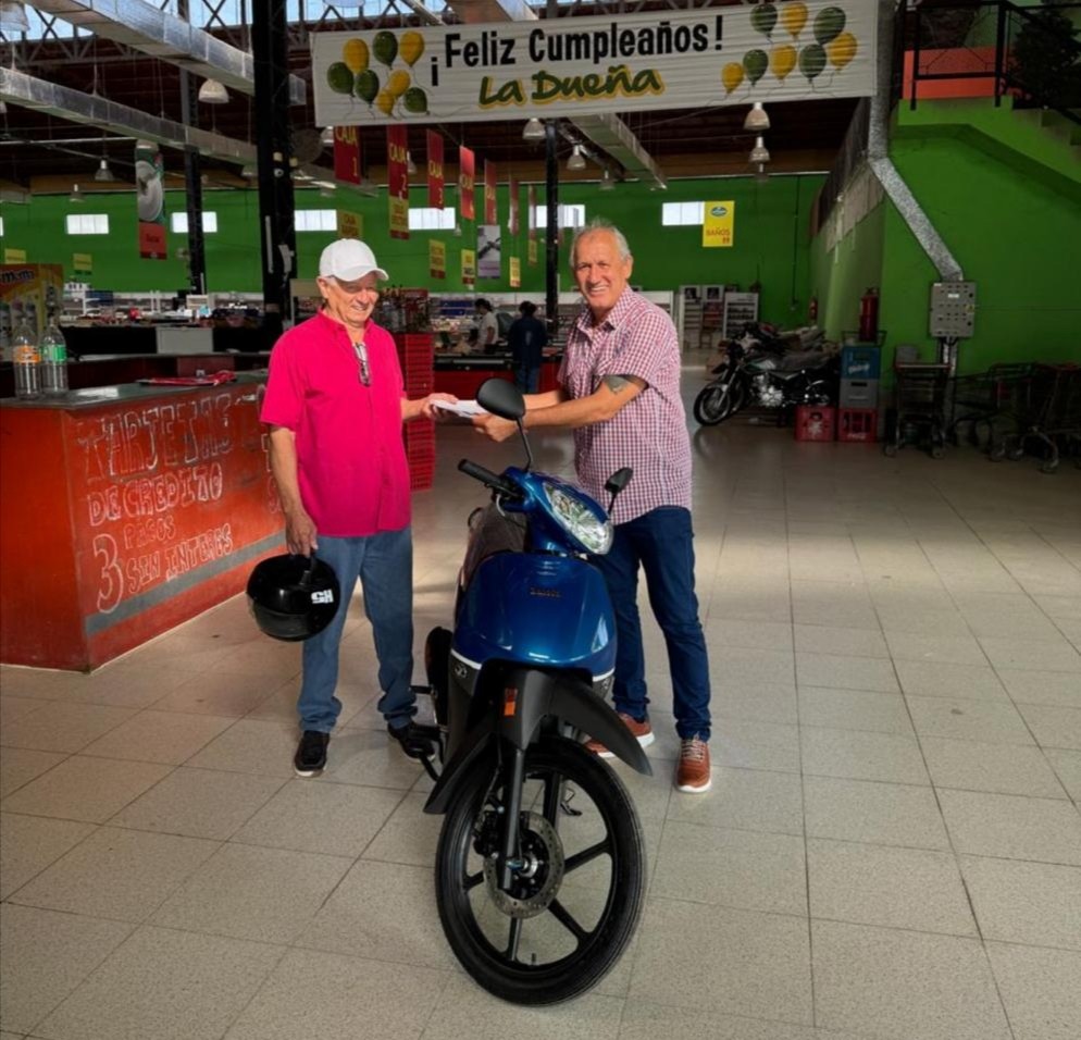 El afiliado mercantil de Pirané, Fernando Cáceres Bordón es el feliz ganador de una moto Zanella ZB 110 Full, que le fuera entregada por el titular del CEC-Formosa, Anibal Alarcón