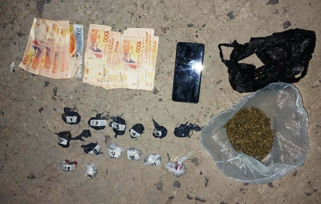 Efectivos del Grupo Operativo Motorizado (GOM) detuvieron a un joven de 18 años que tenía en su poder 14 envoltorios de marihuana, una bolsa de polietileno con la misma sustancia, elementos de almacenamientos, un teléfono celular y dinero.