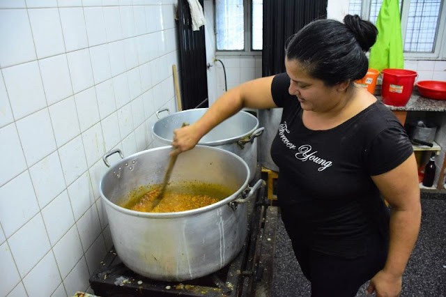 Luego, fue detallando qué platos se sirven durante los cinco días que funciona el comedor, de acuerdo a una planificación: los lunes se les prepara a los comensales un guiso de fideo; martes, tallarín; polenta con tuco los miércoles, jueves tallarín de pollo y los viernes guiso de lentejas con arroz.