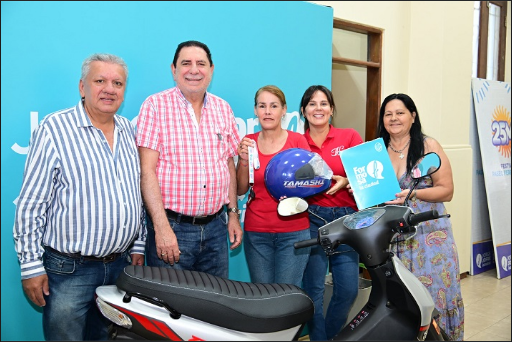 La feliz ganadora acudió a la entrega junto a su hijo Brian, que coincidentemente cumple años; ambos desbordados de alegría por poder tener un importante medio de movilidad.