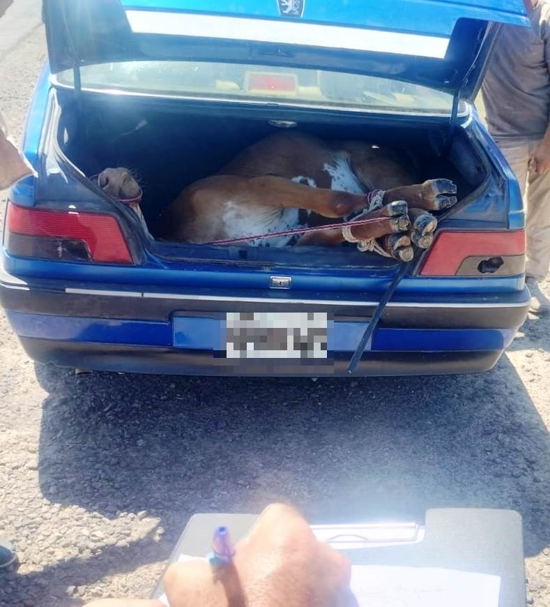 Un hombre trasladaba una vaquilla viva en el baúl de su auto