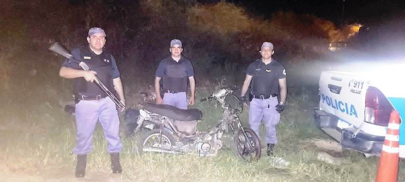 Durante ese trabajo, observaron en un pasaje a dos hombres que circulaban en una motocicleta, quienes al percatarse de la presencia policial se dieron a la fuga hacia una zona boscosa y dejaron abandonado el rodado.