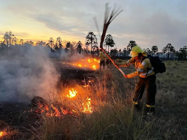 Unos 30 efectivos del Cuerpo de Bomberos y de los distintos Destacamentos de esta ciudad trabajaron intensamente por más de cinco horas para extinguir por completo un incendio de pastizales en un campo, que consumió unas 450 hectáreas.