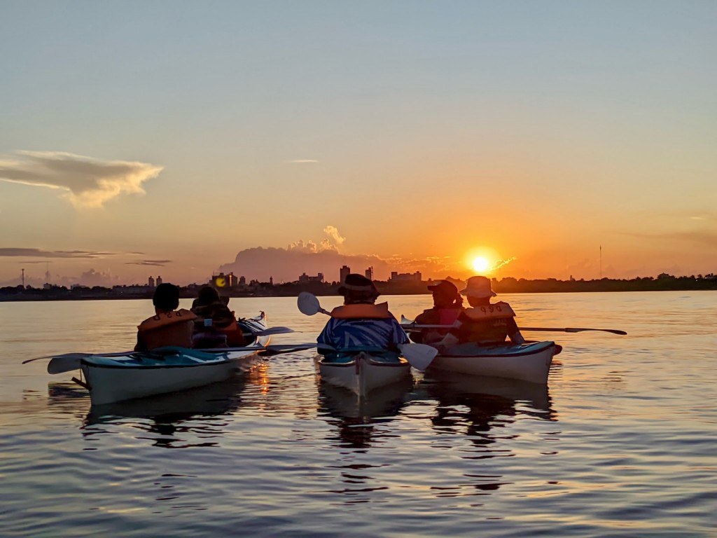 Puede ser una imagen de 5 personas, moto acuática, kayak y masa de agua