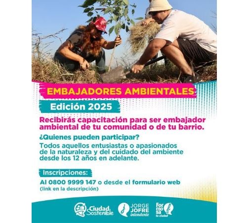 Pueden participar de esta nueva iniciativa todos aquellos entusiastas o apasionados de la naturaleza y del cuidado del medio ambiente desde los 12 años en adelante. Para ser embajador ambiental, los interesados pueden inscribirse a través de las redes sociales de Formosa Tu Ciudad o comunicándose con el Centro de Atención al Vecino (0800-9999-147).