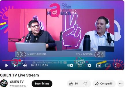 Conducido por Rolando Acosta y Mauro Molina, y con dos emisiones semanales (martes y jueves de 7.30 a 8.45 hs) inició el jueves pasado el programa de streaming “De esto si se habla” que se transmite por el canal Quien TV Formosa.