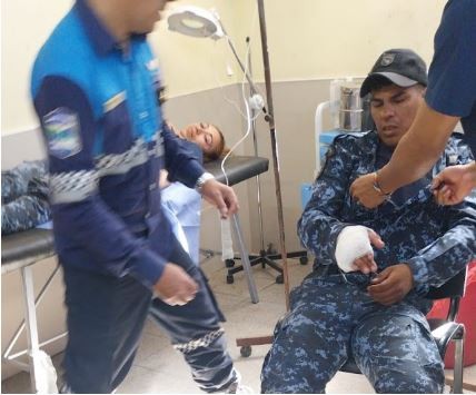 Rápidamente los lesionados fueron auxiliados, mientras continuaba la lluvia de cascotes; se cubrió con los escudos a los lesionados, fueron retirados de abajo de la camioneta y trasladados inmediatamente hasta el Hospital de Las Lomitas.