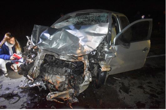 Por cuestiones que se tratan de establecer, se produjo la colisión con un Chevrolet Prisma que circulaba en sentido contrario, al mando de un hombre de 41 años, que llevaba como acompañante a una mujer y una niña de un año.