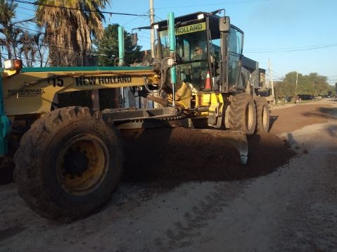Trabajos para la mejora de arterias se desarrollaron a lo largo de la calle José M. Uriburu, en el B° Villa del Rosario, donde se dispusieron motoniveladoras para la ejecución del perfilado de superficie, tal como en en B° Virgen del Carmen, aquí con relleno en la plaza del barrio, y con el enripiado en el acceso a la capilla del lugar.