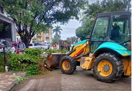 En consecuencia, cuadrillas municipales y cooperativistas realizaron activamente tareas de desobstrucción de desagües, levantamiento de ramas y limpieza integral, con el objetivo de evitar anegamientos en casos de lluvias, ya que persiste la inestabilidad climática durante toda la jornada.