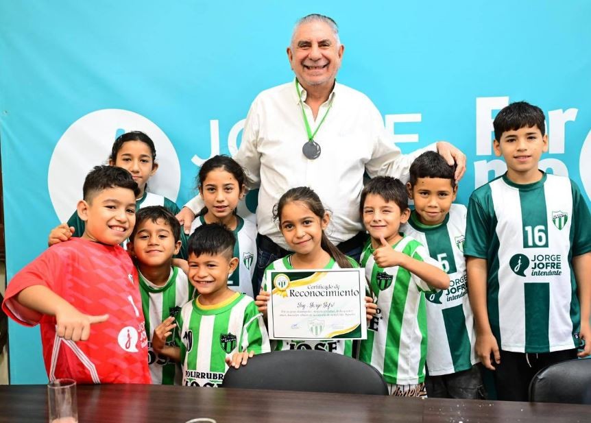 En un gesto de agradecimiento, los niños hicieron entrega de un obsequio al intendente Jofré, como muestra de cariño y reconocimiento por el acompañamiento y el apoyo a las iniciativas deportivas barriales.