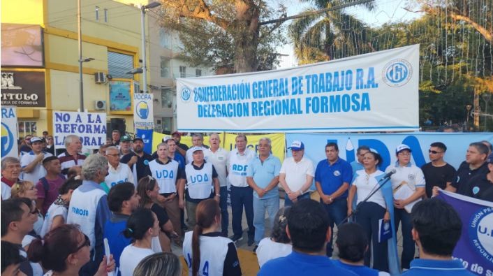 Con una masiva movilización en la Plaza San Martín de la ciudad capital, convocada por la Confederación General del Trabajo de la República Argentina y UPCN -Seccional Formosa-, plegándose así a la marcha nacional de este miércoles 11, en Formosa también los trabajadores protestaron contra la reforma laboral que impulsa la gestión del presidente Javier Milei.