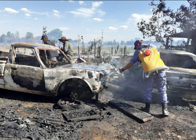 Allí el fuego habría sido iniciado por un hombre con elemento idóneo y producto del viento se propagó hacia una estancia lindante no logrando controlar el mismo, llegando a dos vehículos en desuso los cuales se incendiaron por completo y parcialmente otro que se encontraba en funcionamiento.