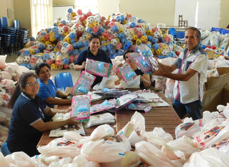 Comentó que “recibimos el cargamento el 16 de diciembre y desde ese tiempo fuimos organizando la distribución, empaquetando los juguetes y haciendo el conteo. Terminamos en la noche del martes 3, ya que lo fuimos haciendo poco a poco con la ayuda de muchos docentes y directivos”.
