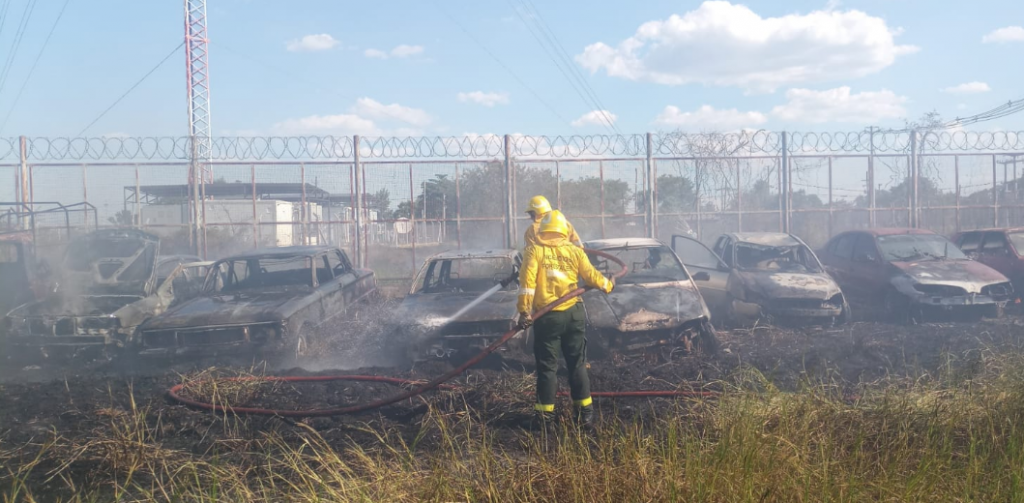 Quema de pastizal en el barrio 7 de Mayo alcanzó a 11 vehículos en desuso