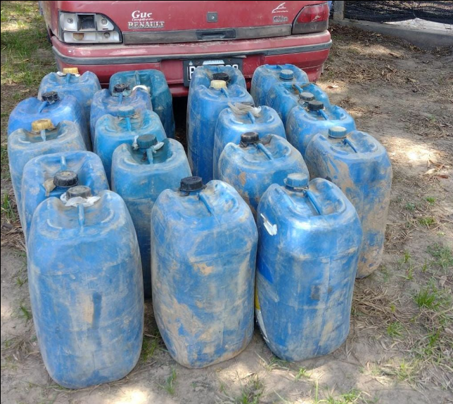 En el marco de los trabajos preventivos en la zona norte de nuestra ciudad, el lunes por la mañana, sobre la Ruta Provincial N° 2 en la zona conocida como Brete Cué, se secuestró 550 litros de combustible que transportaba un hombre en un automóvil Renault Clio, distribuidos en 19 bidones de 30 litros cada uno.