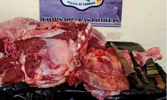 Efectivos de la Policía aprehendieron a un hombre cuando transportaba en una motocicleta mochilas con carne vacuna y cuchillos, luego de realizar una faena clandestina en un campo ganadero ubicado a la vera de la Ruta Provincial 28, a unos 5 kilómetros de la localidad de Las Lomitas.