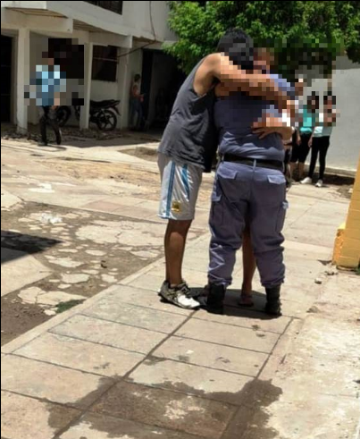 Allí, luego de dialogar con él, escucharlo y contenerlo, los policías lograron que el joven desista de su accionar, tras un fuerte abrazo con la Comisario Alejandrina Barrios, se tranquilizó y fue trasladado por una ambulancia del Sipec hasta el Hospital para su mejor atención.