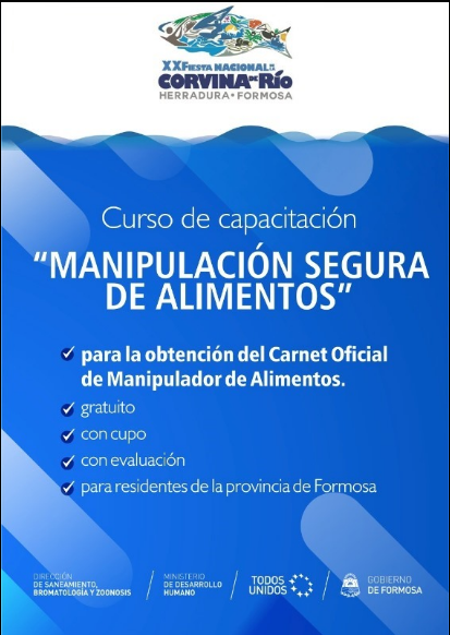 La Dirección de Saneamiento, Bromatología y Zoonosis del Ministerio de Desarrollo Humano estará brindando capacitación, acompañamiento y asesoramiento a los emprendedores gastronómicos que presentarán sus stands de alimentos en la XX edición de la Fiesta Nacional de la Corvina de Río, que se realizará en la localidad de Herradura los días 10, 11 y 12 de febrero.