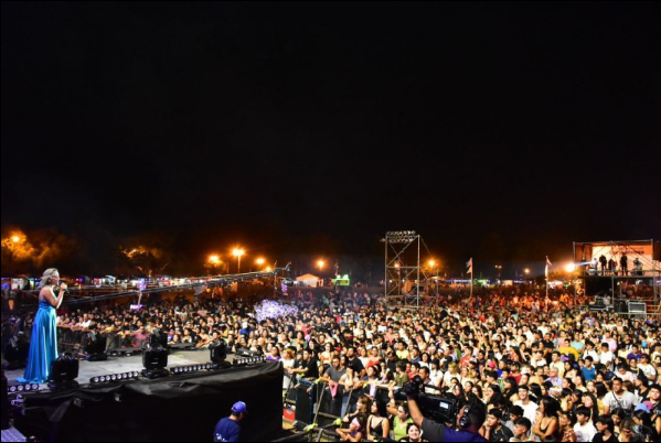 La primera noche del festival- con acceso libre y gratuito- tuvo como protagonista a la cantante argentina María Becerra, quien llegó a la provincia el jueves pasado y probó sonido en el escenario durante la siesta de este viernes, ante un buen marco de público que la esperaba desde temprano.