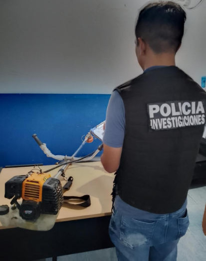 Luego de un exhaustivo trabajo, los investigadores llegaron hasta una vivienda ubicada en inmediaciones del hecho, donde se entrevistaron con el propietario, quien hizo entrega de forma voluntaria una moto guadaña, refiriendo que en horas de la madrugada del viernes, un sujeto dejó abandonado frente a su hogar el mencionado bien.