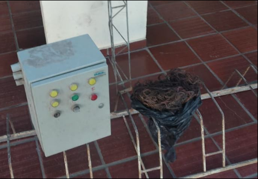 Tras recorridas por el sector posterior del inmueble, los policías hallaron oculto entre las malezas un tablero electrónico, una viga tipo perfil de hierro y un bicicletero de hierro, todos elementos que pertenecen a la empresa.