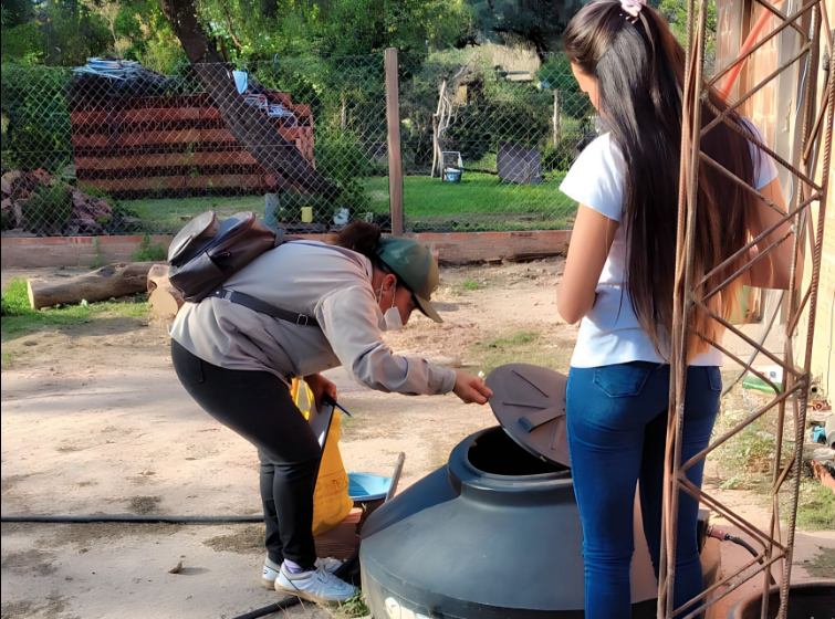Bajo esa modalidad, en la localidad El Colorado, los operadores sanitarios desplegaron actividades en el barrio Pellegrini, donde fue reforzado el control de focos, fundamentalmente en los reservorios que la gente utiliza para acumular agua.