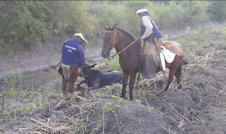 Allí, lograron recuperar una vaquilla, que presentaba una herida en la parte del hocico, presumiblemente un machetazo por el tipo de corte y profundidad, indicios claros que la misma fue trasladada y abandonada por los abigeos.