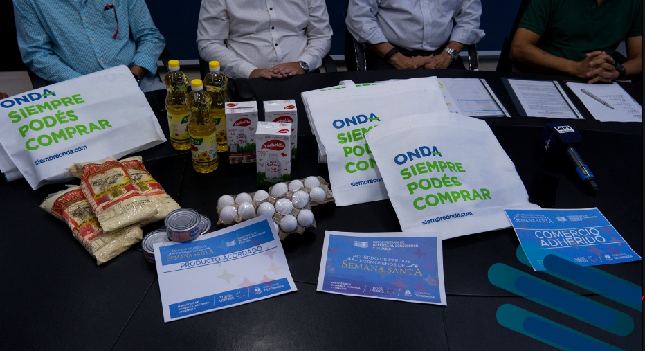 El acuerdo contempla ocho productos de primera necesidad para elaborar las comidas tradicionales de Semana Santa: aceite de girasol por 900 cc; harina de maíz por 800 gramos; atún por 170 gramos; huevos seis unidades; leche fluida por un litro, queso cremoso por 500 gramos; rosca de pascuas por 400 gramos y pata muslo de pollo por un kilo.