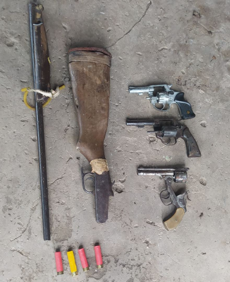 Por otra parte, se solicitó la presencia de personal de Policía Científica, que tomó muestras fotográficas del lugar y secuestró tres revólveres calibres 22, 32 y 38, más una escopeta calibre 28 y varios cartuchos, que fueron entregados por la denunciante.